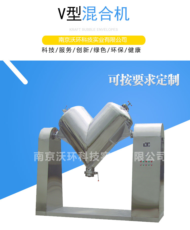 產(chǎn)品概述: 本機(jī)適用于制藥、化工、食品的干粉狀、顆粒裝物料的混合。該機(jī)混料筒結(jié)構(gòu)獨(dú)特,混合均勻,效率高,不積料。整機(jī)結(jié)構(gòu)簡(jiǎn)單,操作容易。外表面和物料接觸部分均采用優(yōu)質(zhì)不銹鋼制造,造型美觀,維護(hù)、清洗方便。 應(yīng)用場(chǎng)景: 本機(jī)用于制藥及其它行業(yè)的粉狀或粒狀物料混合之用。本系列混合機(jī)有高效混合型和普通混合型兩種,高效型混合機(jī)主要對(duì)較細(xì)的粉;?qū)δ骋恢髁虾枯^少的物料均能混合均勻;普通型混合機(jī)主要適用于一般物料或產(chǎn)量較大的企業(yè)使用。筒體光滑無(wú)死角、整機(jī)采用不銹鋼材料制作、且外型美觀等特點(diǎn)。 工作原理: 本機(jī)一端裝有電機(jī)與減速機(jī),電機(jī)功率通過(guò)皮帶傳給減速機(jī),減速機(jī)再通過(guò)聯(lián)國(guó)器傳給V型桶。使V型桶連續(xù)運(yùn)轉(zhuǎn),帶動(dòng)桶內(nèi)物料在桶內(nèi)上、下、左、右進(jìn)行混合。 材質(zhì)及結(jié)構(gòu): 1、 混合機(jī)的筒體采用2.5mm304-2B不銹鋼材料制作,外包采用1.2mm304-2B的不銹鋼材料制作,支架采用5#槽鋼。 2、混合的出料閥選用全不銹鋼精加工而成,并在連接處采用定型硅橡膠材料密封,確保機(jī)器在工作時(shí)的密封效果。 3、混合機(jī)的進(jìn)料口采用選進(jìn)的快開(kāi)結(jié)構(gòu),使用戶在進(jìn)料和清洗時(shí)操作簡(jiǎn)便。 4、混合機(jī)筒體兩側(cè)拼縫處加焊兩塊不銹鋼引板并采用拋光處理,使筒體內(nèi)無(wú)一處死角,確;旌蠙C(jī)在混合、清洗時(shí)能夠達(dá)到理想的效果。 5、混合機(jī)內(nèi)設(shè)有強(qiáng)制攪拌裝置。